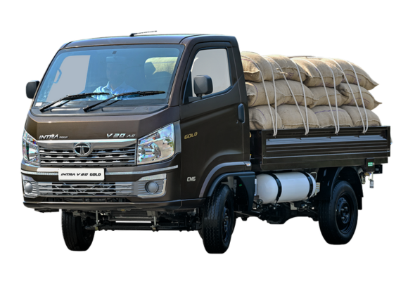 The Tata Intra V20 Gold is a strong and reliable pickup built to handle heavier loads with ease while delivering consistent performance for daily business operations. It is powered by an efficient petrol and CNG engine option, producing 43 kW at 4000 RPM in petrol mode and 39 kW at 4000 RPM in CNG mode, along with a healthy torque output of 106 Nm (petrol) and 95 Nm (CNG) between 1800–2200 RPM, ensuring smooth pulling power even under load.
