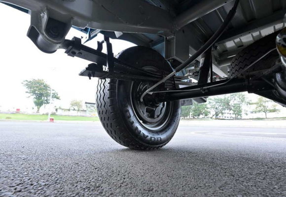 Built on a strong chassis, the Yodha Crew Cab features a rigid front suspension with leaf springs and shock absorbers, along with a semi-elliptical rear suspension with hydraulic double-acting telescopic shock absorbers, providing stability and comfort even on bumpy roads. Riding on 215/75 R15 LT tyres, it ensures excellent grip and durability in demanding conditions.